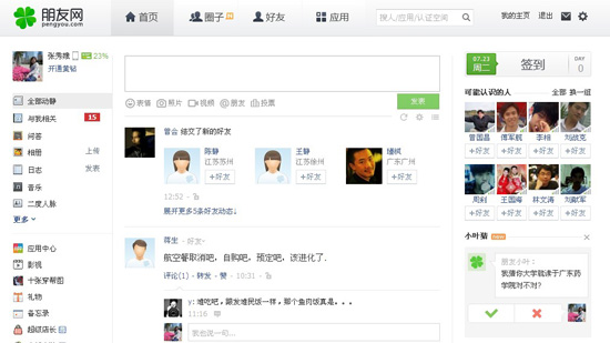 朋友网是一个真实的社交网络,在这里你能和忘年之交的同学、朋友、同事、校友、老乡保持随时的联系,了解他们的最新状态,获取一张免费的通讯录。重拾各种友谊。由于它的粘性强,用户体验高,因此朋友网的权重是7,用户注册量总数超过8.562亿,其中活跃用户数超过3.551亿。只要用户注册了QQ,朋友网都会邀请你加入这个真实社交平台。朋友网社交平台与Fexbook不同的是:朋友网是为用户提供行业、公司、学校、班级、熟人等真实的社交场景,与QQ不同的是在真实的头像下能查找到很多头像,有你认识的,有你不认识的,这样有很多的选择,又能真实了解对方信息,有人还在这个平台里找结婚对像。在朋友网里为企业提供商机,在里面的靠谱二手交易平台功能发布转让或求购信息,买卖双方人情在!同时在手机客户端安卓版v3.1的,iPhone版的,手机客户端新功能“嘀一嘀”都让用户粘性非常强。想丰富自己人际圈的朋友们,千万别错过真实社交平台朋友网!朋友网如下图: