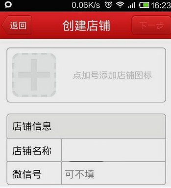 C. 输入店铺名称,店铺图标,也可以绑定微信号。完成创建店铺.