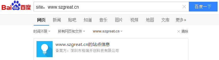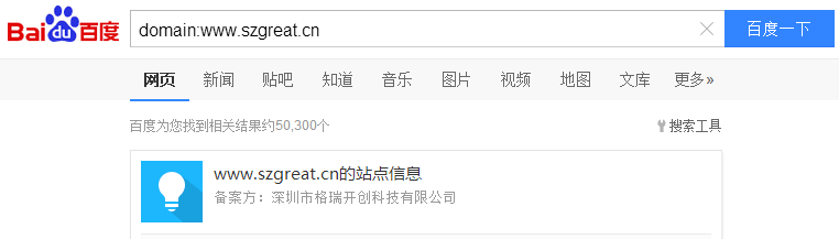 比如查询易开店收录格式即为: site:www.szgreat.cn