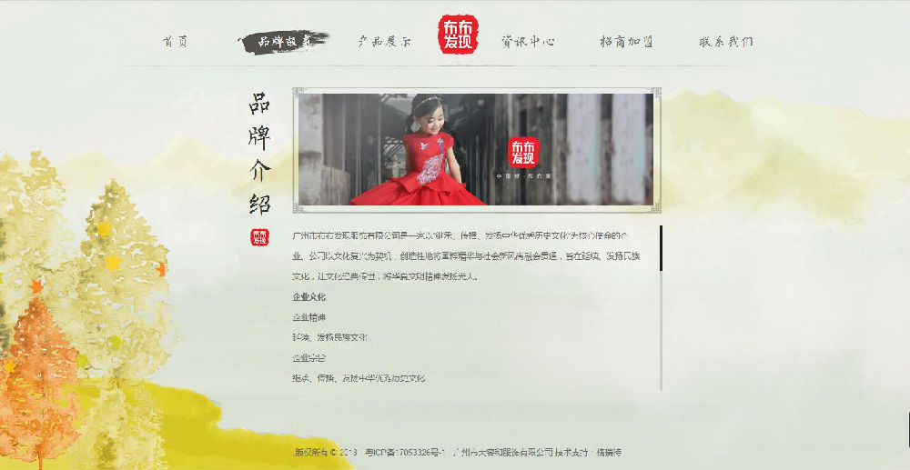 广州市布布发现服饰有限公司是一家以“继承、传播、发扬中华优秀历史文化”为核心使命的企业。公司以文化复兴为契机,创造性地将国粹精华与社会新风尚融会贯通,旨在延续、发扬民族文化,让文化经典传世,将华夏文明精神发扬光大。